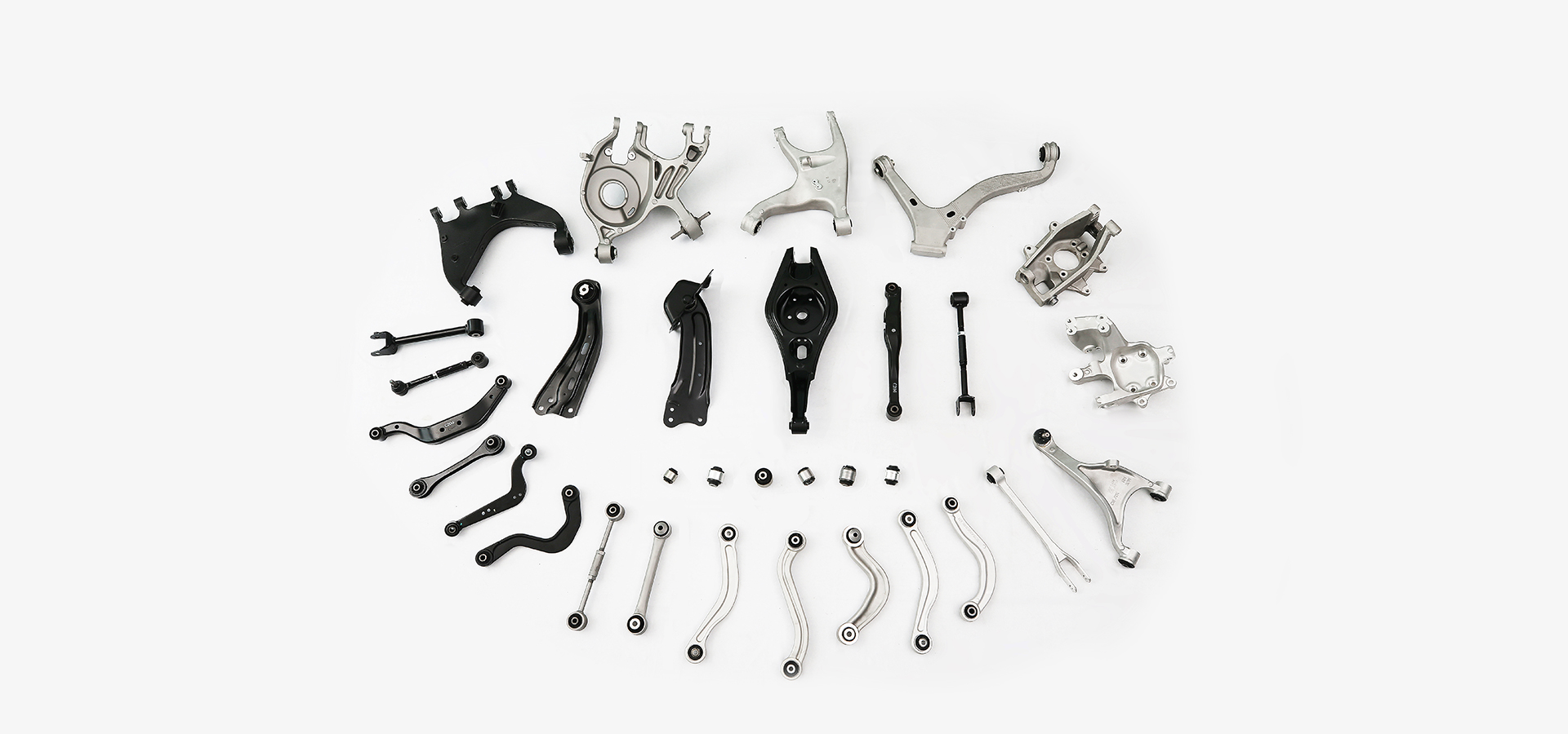 通過球關(guān)節(jié)的轉(zhuǎn)動(dòng)和擺動(dòng),及橡膠襯套的扭動(dòng)來支撐輪胎的上下運(yùn)動(dòng)。